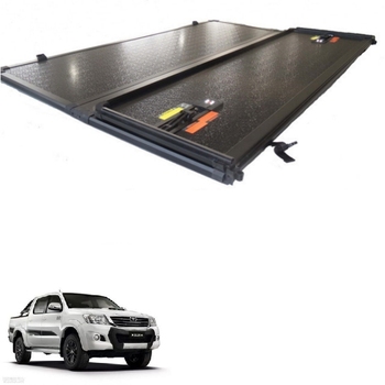 Toyotar HILUX 5 'ที่คลุมเตียง6063อลูมิเนียมสีดำกันน้ำรถกระบะฝาปิด tonneau แบบแข็งพับสามทบ